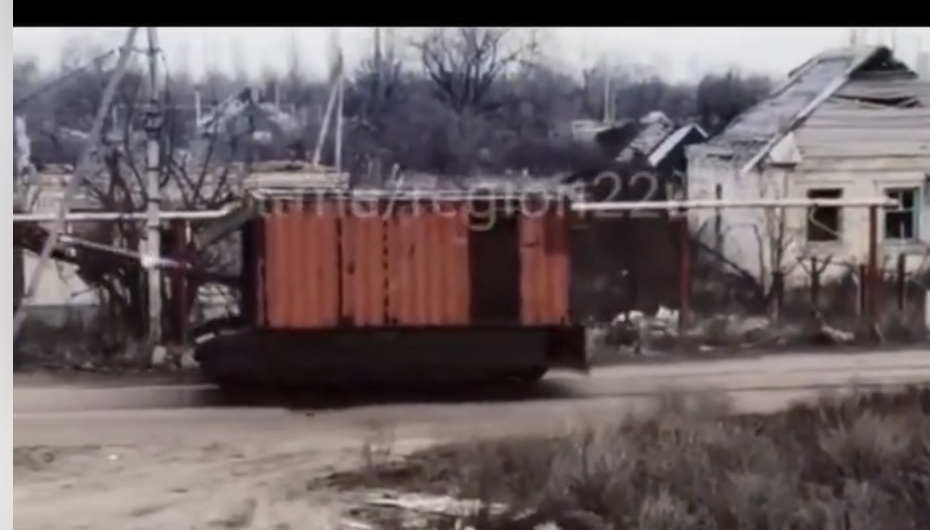 After their life in oceangoing service, shipping containers get repurposed for all sorts of inventive uses - storage sheds, shop spaces, mobile offices, housing, even indoor aquaculture ponds. This month, bystanders in a Russian-occupied area of Ukraine spotted a new and even more creative application: two Russian tank crews (and possibly more) have installed cut-up shipping containers atop their vehicles to create improvised anti-drone cages.
