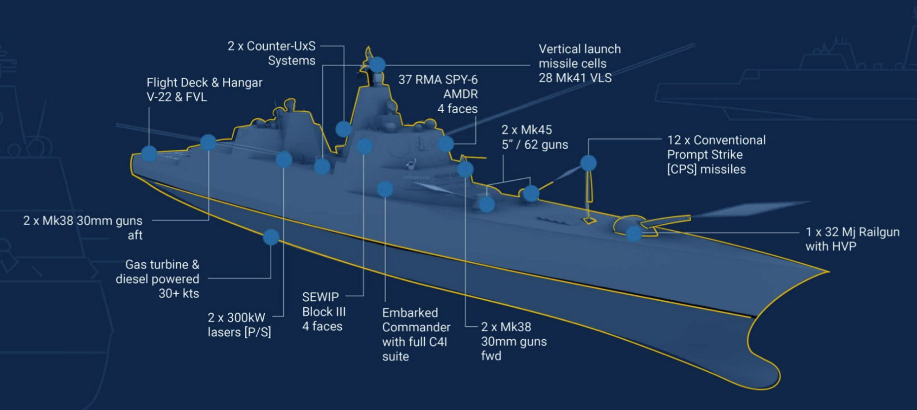 The US Navy has unveiled plans to build a new class of battleships, signalling a major shift in surface combatant design.