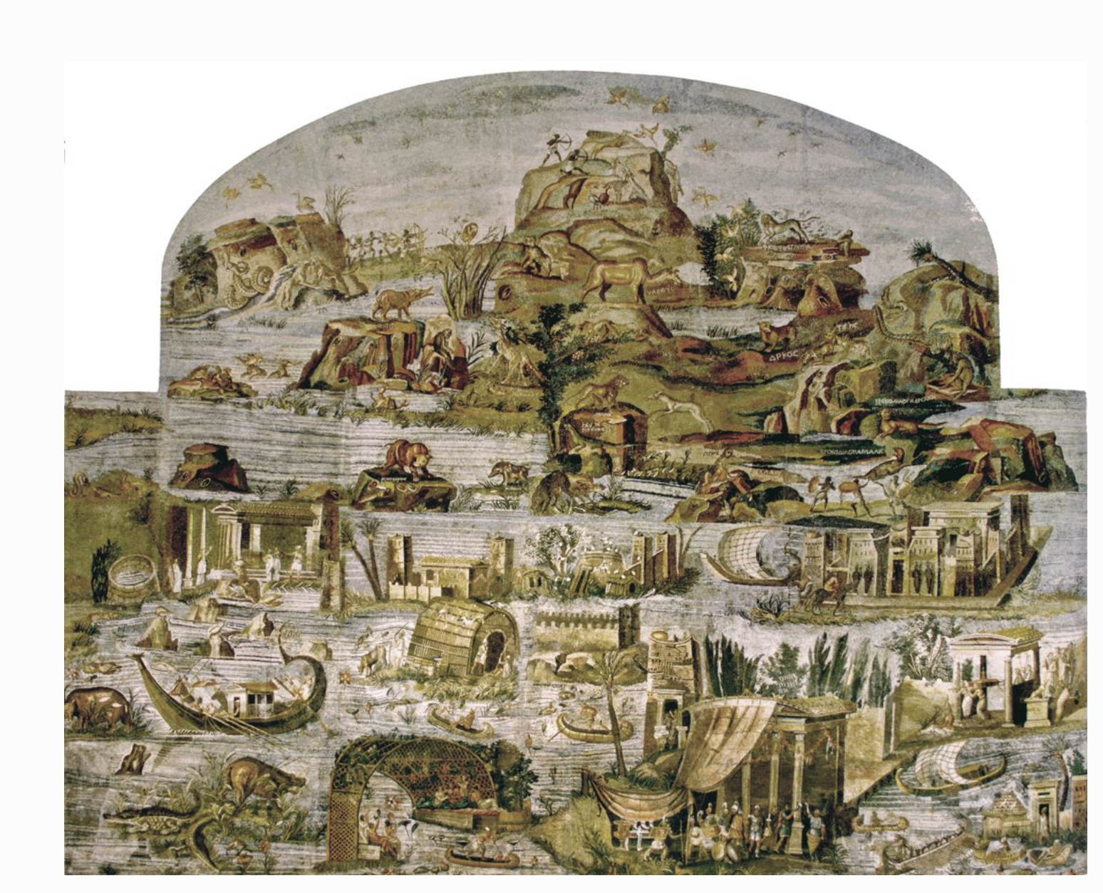 The Palestrina mosaic, also known as the Nile mosaic of Palestrina, depicts scenes of the river. Public domain via Wikimedia Commons