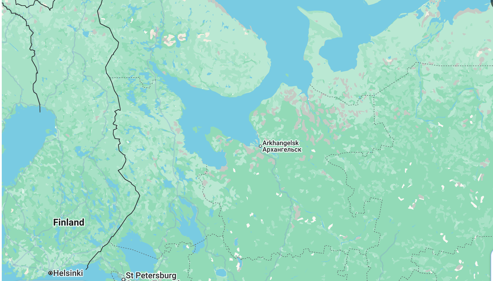 Located near the mouth of the Dvina River on the White Sea, Arkhangelsk is just south of the Arctic Circle and is icebound in winter. In the navigation season, it is a gateway to consumers and industries in western Russia: though the city is itself remote, it is still the NSR's closest deep-sea port to Moscow and St. Petersburg, and the Severnaya Railway connects it with the rest of Russia's rail network.