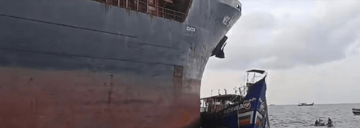 The nearby fishing boats alerted the cargo ship to the presence of another fishing boat in its path. Although the MSC Silver II reduced speed, it brushed against the Prathyasha, causing several crew members from the fishing boat to jump overboard. All were later confirmed safe.