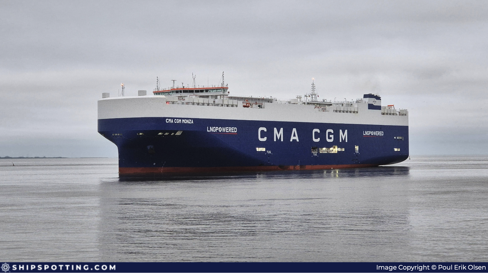 The vessel involved, CMA CGM MONZA, is a 2024-built LNG dual-fuel PCTC of around 200 metres in length, with a capacity of approximately 7,000 vehicles. The ship was built in China and is owned by Eastern Pacific Shipping, under charter to CMA CGM.