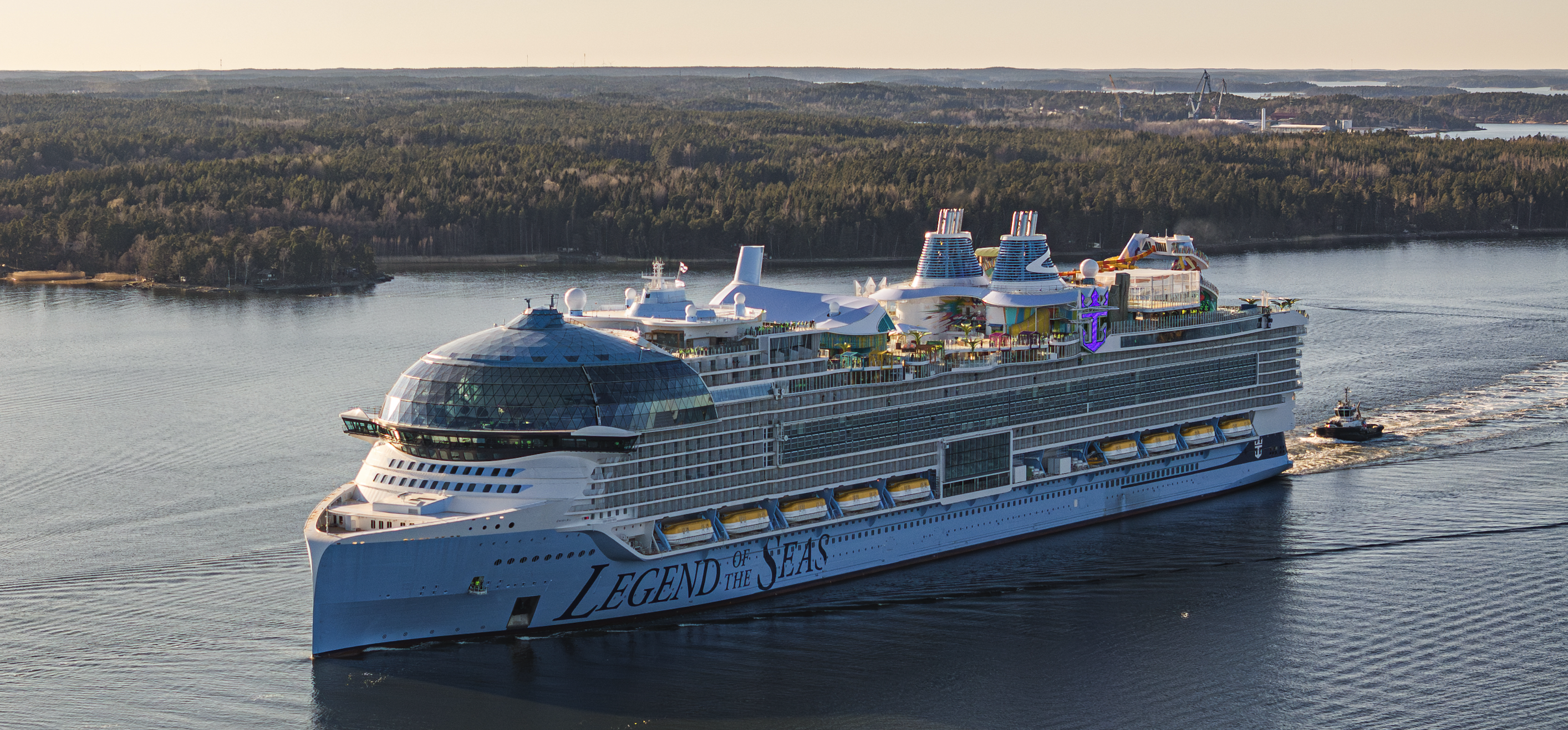 The order comes as the third ship of the class has just begun sea trials. Named Legend of the Seas, she departed the Turku, Finland, shipyard of Meyer Turku on April 19. The ship is scheduled to spend 10 days at sea with 2,000 engineers and specialists aboard. They will be testing systems, evaluating her movement in open water, and testing the LNG-fueled engines. They expect she will cover more than 2,400 nautical miles before returning to the shipyard for final outfitting and her entry into service in July.