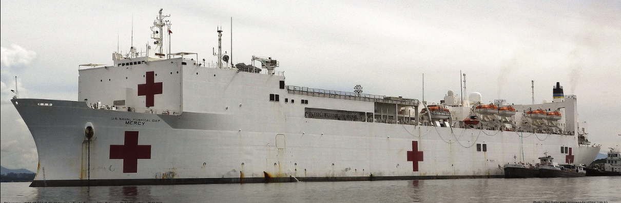 "The post was accompanied by an artist rendering of the Mercy, apparently indicating that it was the one being deployed of the two Navy hospital ships in the U.S fleet. The other one is the USNS Comfort, home-ported in Virginia.